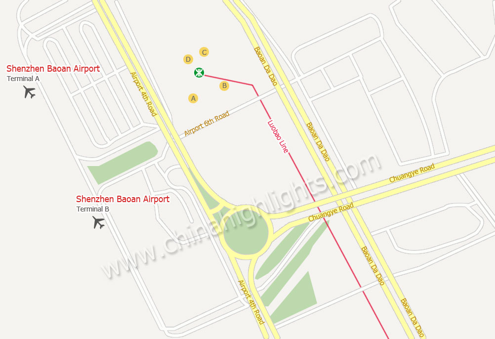 - Luohu Control Point Remote Terminal – is located at the first floor of Huaqiao Building, Heping Road, Luohu District, which is situated adjacent to Luohu Control Point (hence its name) and Shenzhen Railway Station. There are shuttle buses to Shenzhen Bao'an International Airport between the hours of 8:30 and 20:30, at intervals of 20 minutes. The trip takes about one hour. The fare for the shuttle bus is RMB 20, per person.